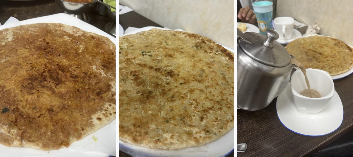 You can't go wrong with the stuffed parathas, especially the Aloo Paratha and Paneer Tikka. For a hit of flavor, try the Chicken Tikka Masala or the vegetarian chicken curry. Don’t forget to finish your meal with a pot of traditional masala chai or indulge in their colorful sweets.